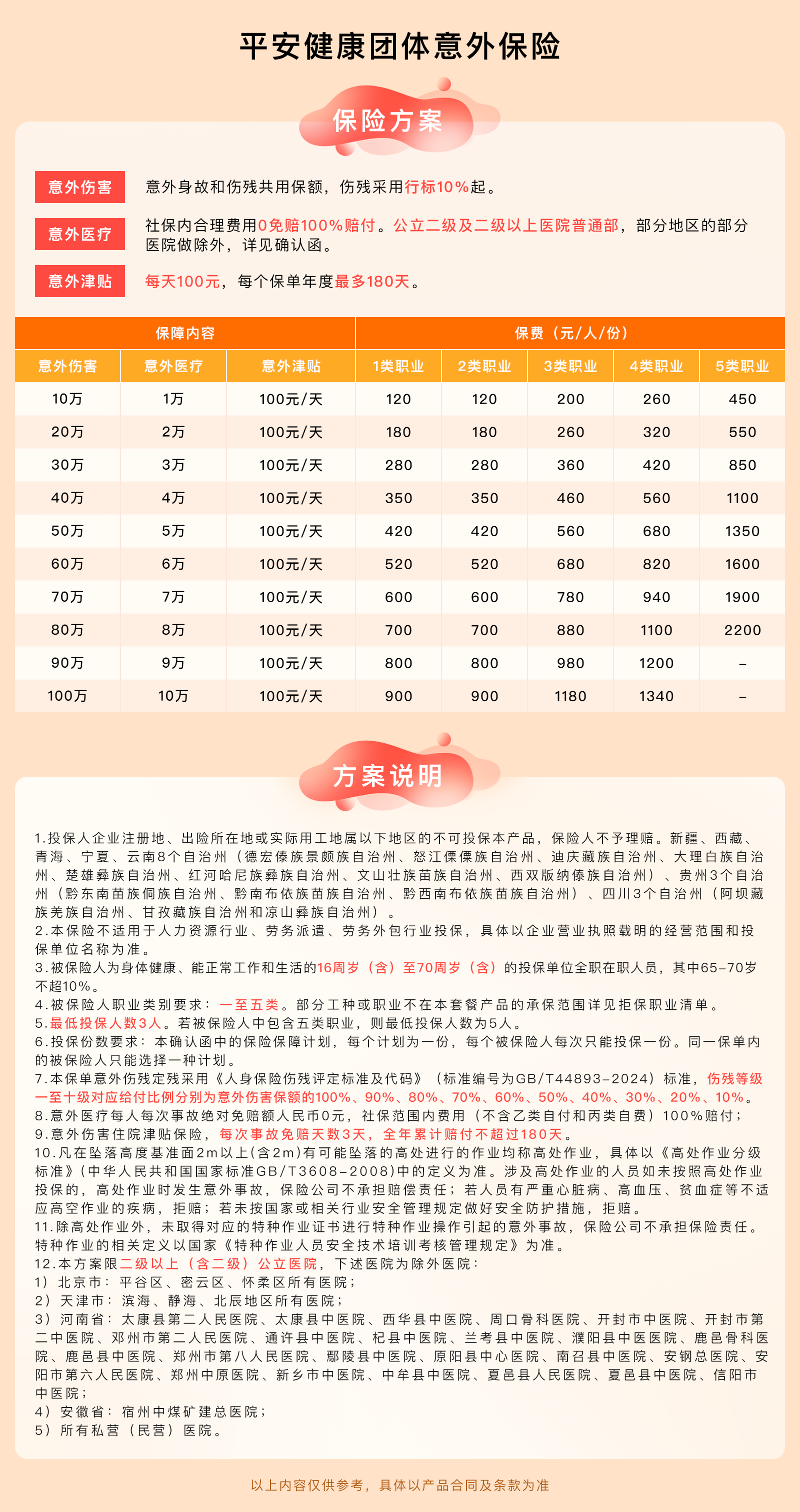 团体意外险-常规方案对比统计表(医疗免赔100元,住院津贴免赔3天)