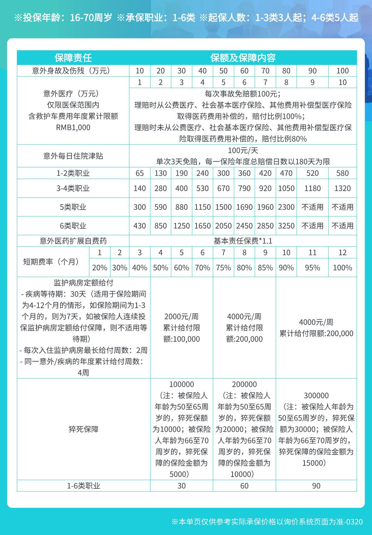 团体意外险-常规方案对比统计表(医疗免赔100元,住院津贴免赔3天)